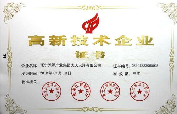 由于企业在科技创新方面做出的卓越成就,企业在2012年被评为国家级高新技术企业,总经理孙维涛先生荣获黑龙江省科技创新优秀个人光荣称号。